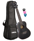 Make a bold statement with the Concert Ukulele in Mahogany Black! This striking ukulele features a sleek black finish that complements its rich mahogany body, delivering warm, resonant tones with excellent projection. The concert size provides a fuller sound and more fretboard space, making it ideal for players of all levels. Whether you're practicing at home, performing on stage, or recording in the studio, this ukulele combines style, playability, and durability. Add this standout instrument to your collection and let your music shine—order yours today!