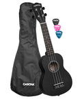 This soprano ukulele in a sleek black finish features a linden body, producing clear and vibrant tones. A stylish and versatile instrument for players of all levels.